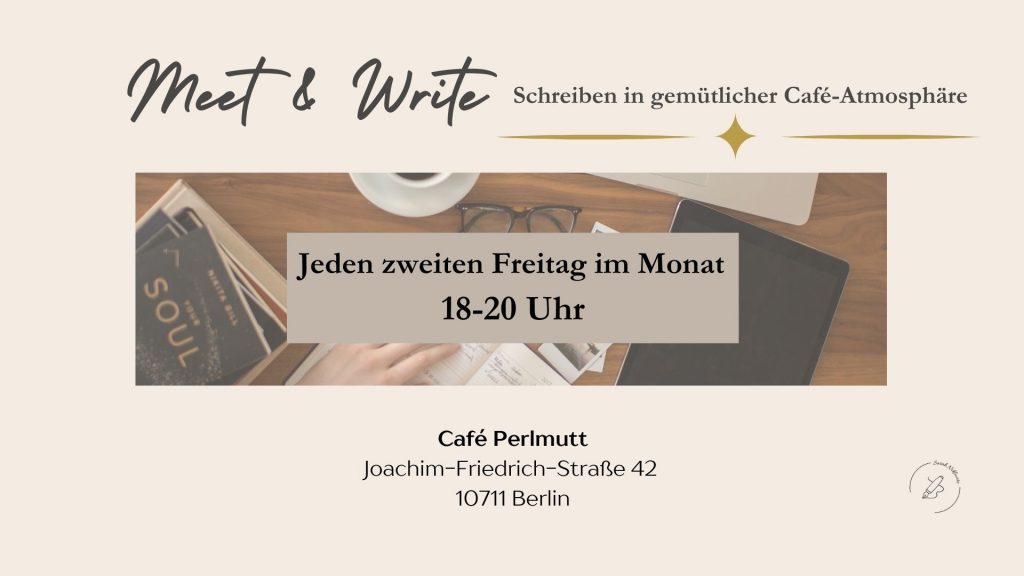 Jeden zweiten Freitag im Monat treffen wir uns im wunderschönen Café Perlmutt in Berlin-Charlottenburg zu einem gemütlichen Meet & Write. Nach offiziellem Ladenschluss dürfen wir von 18 bis 20 Uhr gemeinsam schreiben und uns austauschen. Wir bleiben eine kleine Gruppe von maximal 12 Menschen – damit wir genug Ruhe finden und sich auch die Introvertierten unter uns sicher und wohlfühlen ♥️